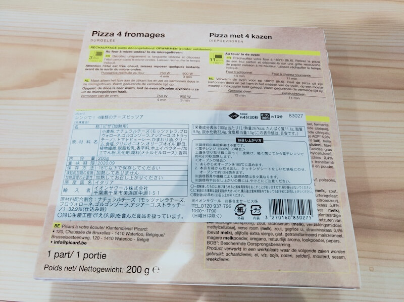 | 商品名 | レンジで4種類のチーズピッツァ |